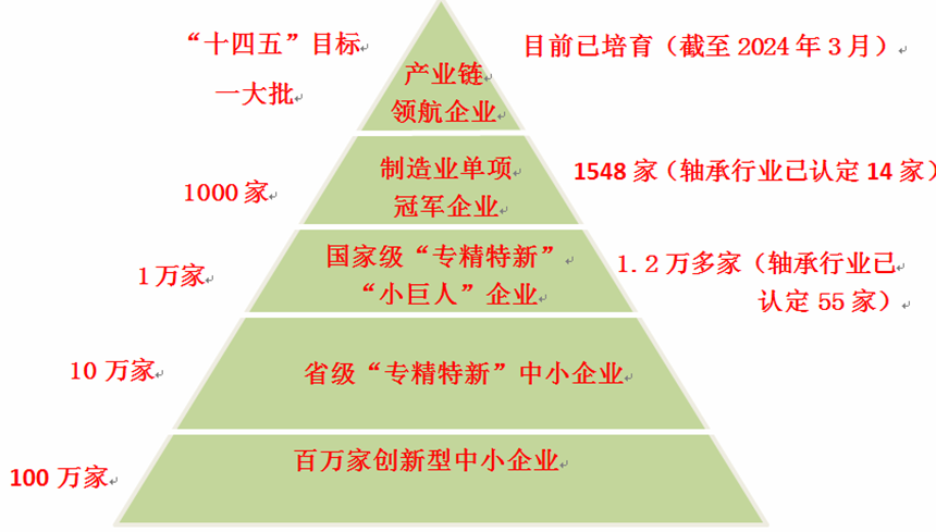 黨中央、國務(wù)院高度重視優(yōu)質(zhì)企業(yè)培育工作?!秶窠?jīng)濟和社會發(fā)展第十四個五年規(guī)劃和2035年遠景目標(biāo)綱要》(《規(guī)劃綱要》)明確提出,要“實施領(lǐng)航企業(yè)培育工程,培育一批具有生態(tài)主導(dǎo)力和核心競爭力的龍頭企業(yè),推動中小企業(yè)提升專業(yè)化優(yōu)勢,培育專精特新“小巨人”企業(yè)和制造業(yè)單項冠軍企業(yè)。”我國軸承行業(yè)應(yīng)認真貫徹這一精神,在“十四五”,努力形成軸承行業(yè)優(yōu)質(zhì)企業(yè)梯度培育格局,促進優(yōu)質(zhì)企業(yè)擴群。