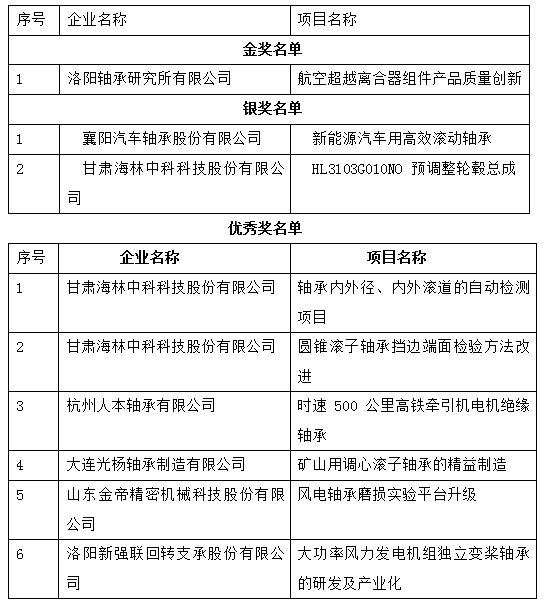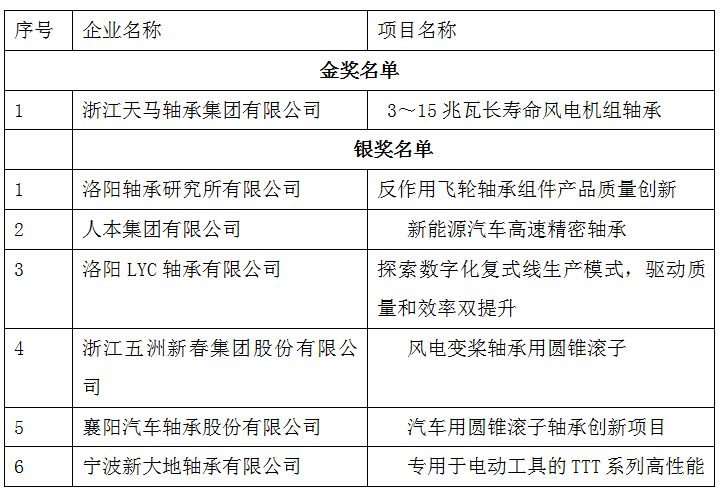 第二屆是2023年6月為“合力杯”全國機械工業(yè)產(chǎn)品質(zhì)量創(chuàng)新大賽”2023年6月5日,以“新征程、高質(zhì)量、創(chuàng)未來”為主題,由中國機械工業(yè)聯(lián)合會、安徽省經(jīng)濟和信息化廳共同主辦的“合力杯”第二屆全國機械工業(yè)產(chǎn)品質(zhì)量創(chuàng)新大賽啟動儀式在安徽應(yīng)流集團舉行,大賽自啟動以來,得到了全行業(yè)的熱烈響應(yīng)。按照工作程序和入選標(biāo)準,經(jīng)由30家協(xié)辦單位組織推薦和自行申報的方式,活動開展以來,共收到申報項目440余項。經(jīng)大賽評審委員會組織行業(yè)專家進行線上初賽評審專業(yè)協(xié)會復(fù)審,決賽評審,最終確定共有184項產(chǎn)品質(zhì)量創(chuàng)新項目獲獎,其中金獎24項、銀獎64項、優(yōu)秀獎96項,其中軸承行業(yè)軸承行業(yè)7家企業(yè)9個項目獲獎,名單如下: